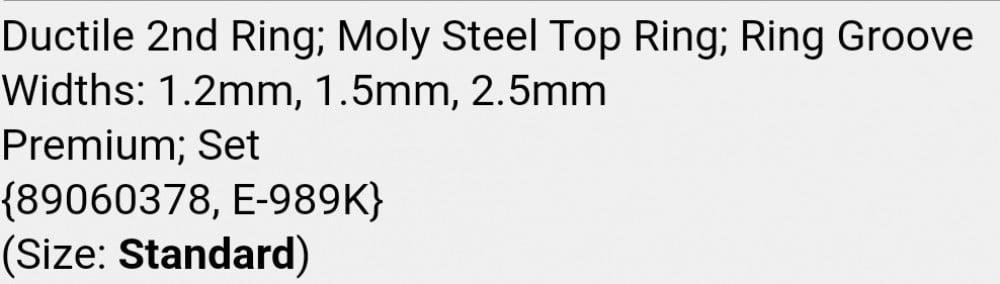 Ring Set Groove Widths (mm) 1.2 x 1.5 x 2.5
